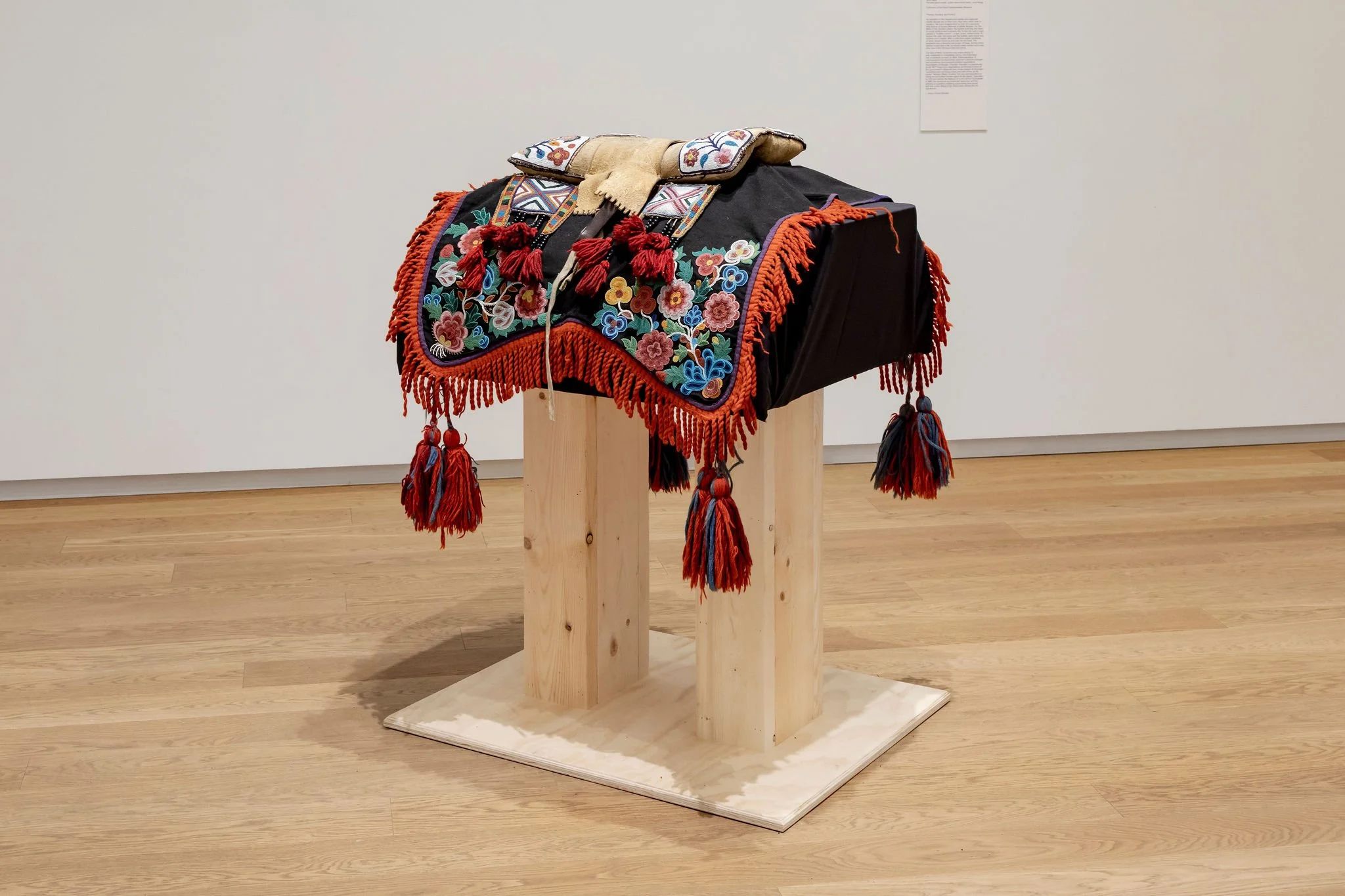 Métis people have always understood themselves and their culture through art. The grandmothers of the Métis Nation adorned loved ones in exquisite beadwork, embroidery and quillwork. Every stitch embodies care and strengthens relations. History and memory are encoded in form and material. In tandem with oral tradition, objects act as memory devices for the recalling of stories. The term storied objects aligns with the widely held belief in Indigenous cultures that objects have their own life force and power. This exhibition draws on the scholarship of Métis art historian Sherry Farrell Racette. Describing storied objects, she writes, “They remember. They remember us. They remember for us.”